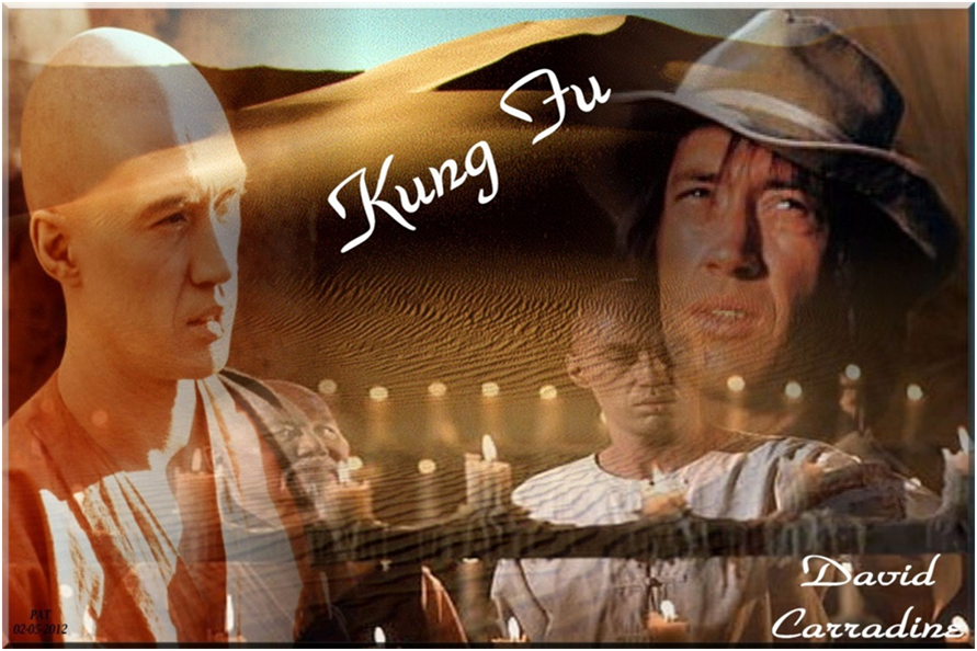 Fotomontaje de David Carradine de la teleserie Kung Fu, obra de varios directores, Estados Unidos, 1972 y 1975