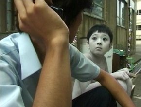 4444444444 tiene como protagonista a un chico joven que pedalea en su bicicleta. No sabemos a dónde se dirige, pues el sonido de un teléfono móvil le hace detenerse. El silencio, sólo interrumpido por el timbre del teléfono proporciona una atmósfera muy sugerente. El chico encuentra el móvil abandonado entre unas cajas, pero el número que está llamando (el mismo que da el título a este corto) no podría ser más desconcertante. El 4 es el número de la mala suerte en Japón (se pronuncia como el kanji que significa “muerte”), así que el espectador sabe que la llamada no puede augurar nada bueno. Cuando el joven descuelga el teléfono, sólo oye un maullido de gato y decide colgar, pero el móvil vuelve a sonar. Cansado, nuestro protagonista se sienta en unos escalones y vuelve a descolgar. Piensa que es una broma, porque al otro lado del teléfono vuelve a escuchar el mismo maullido lastimero. La tensión va en aumento, pero sin efectos musicales como en el cine americano de terror, simplemente se utiliza la confusión del muchacho y el extraño maullido en una escena en la que predomina el silencio, sólo roto por el sonido del viento, y el contraste entre planos generales que nos indican que el chico está completamente solo en la calle y primeros planos en contrapicado que producen angustia al espectador, incluso se realizan planos en el interior del edificio delante del cual está el protagonista sentado. La aparente soledad del muchacho y el sonido del viento que mueve las hojas al que luego se suma el goteo de agua de un grifo generan tensión al personaje, transmitida también al espectador. Los segundos se hacen eternos, pero por fin el chico hace la pregunta que todos nos estamos temiendo “¿Me estás observando?”. La voz de un niño responde afirmativamente, pero no al otro lado del teléfono. Aparece a su lado, desnudo y exageradamente pálido. El espectador sabe perfectamente que junto a este personaje no había nadie pero, sin embargo, ahí está el niño, tocándose las rodillas. El cortometraje termina con un primer plano del niño, maullando con la boca abierta, de la que gotea una sustancia negra y viscosa.