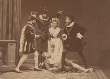 Tableau vivant en un baile de disfraces celebrado en Shanghai el 11 de febrero de 1876. Enrique de Otal y Ric aparece en primer lugar desde la izquierda.*