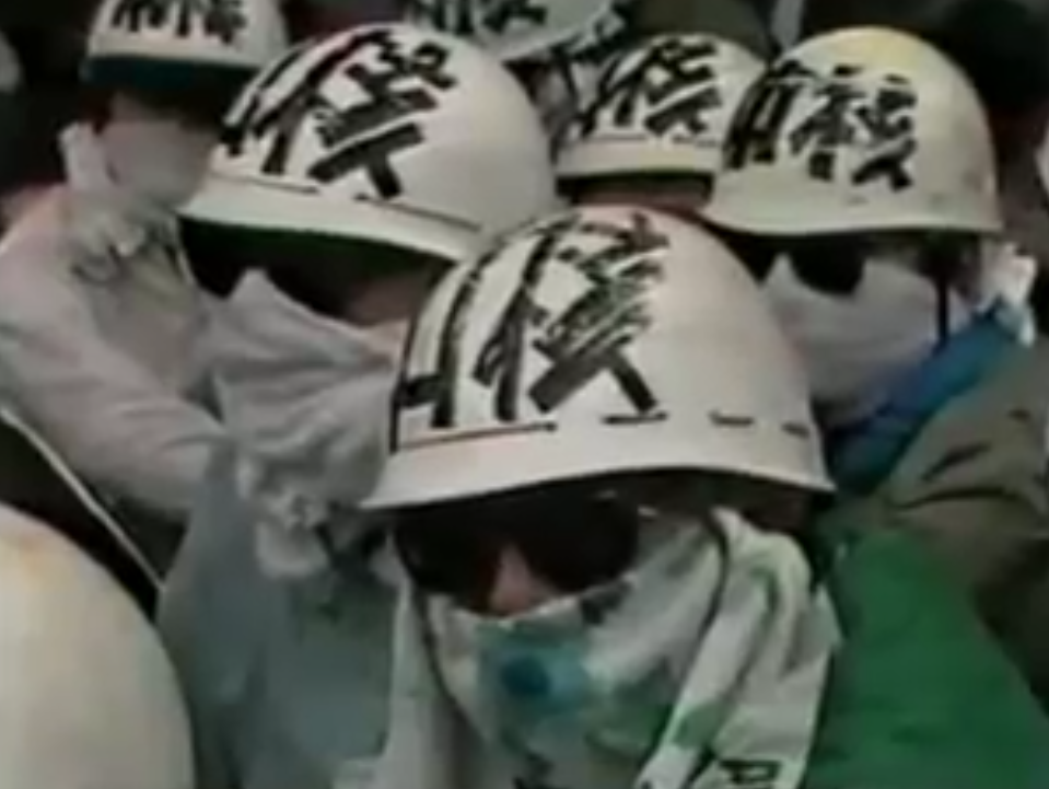 Miembros del Zengakuren, con sus característicos cascos y su cara tapada.